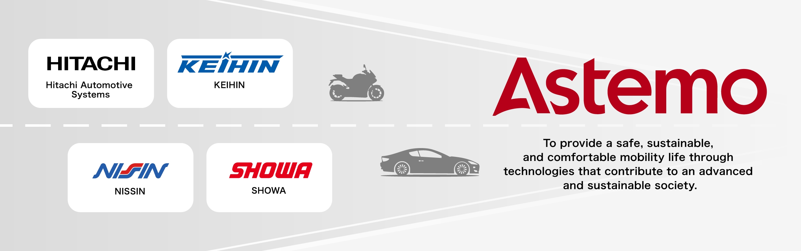 Our company name, Astemo, is derived from “Advanced Sustainable Technologies for Mobility.” The name embodies our strong commitment to providing safe, comfortable, and sustainable mobility life through technologies that contribute to an advanced and sustainable society. Mobility has helped overcome constraints of time and distance, supporting the development of society and culture. Now, we stand at the forefront of that evolution, bearing the mission of envisioning and realizing the next era of mobility with our own hands.