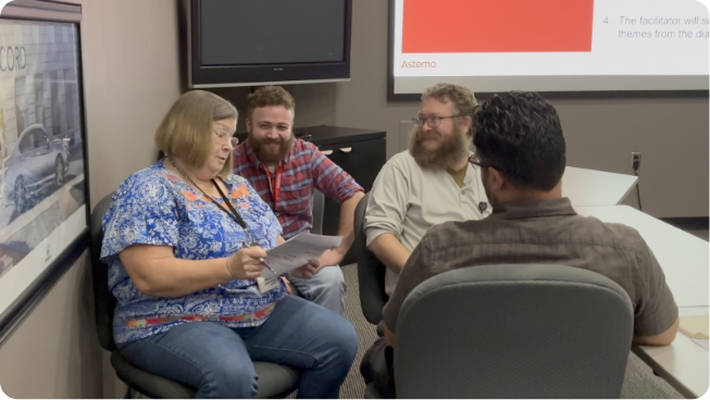 The executive workshop was followed by another workshop, with a diverse group of employees from different countries, cultures, and departments. Workshop members discussed the mission, values and vision in depth, taking on various topics, including "the future vision of Astemo and what is needed to achieve it" and "the values necessary for our employees, to achieve our mission and vision."