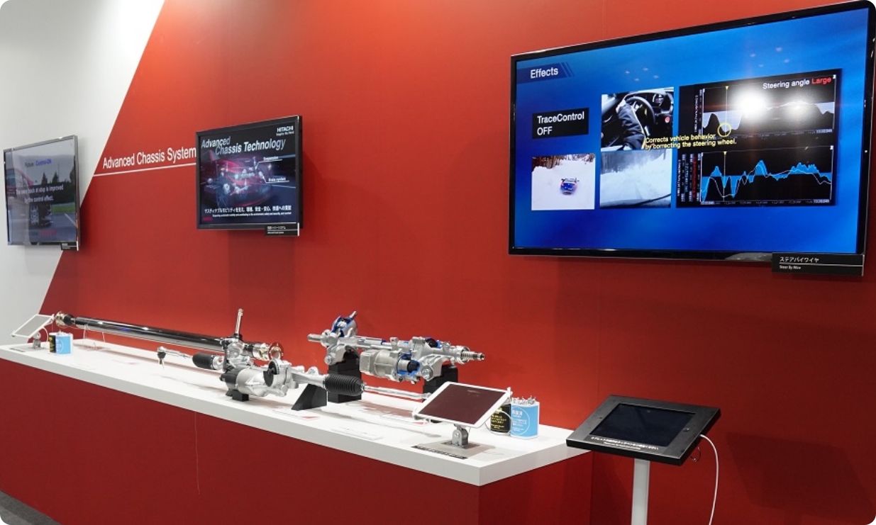 Here we introduce our steer-by-wire simulation, and our electric power steering system and lightweight propeller shaft. These advanced software and electrification technologies enhance performance and improve safety and comfort.
