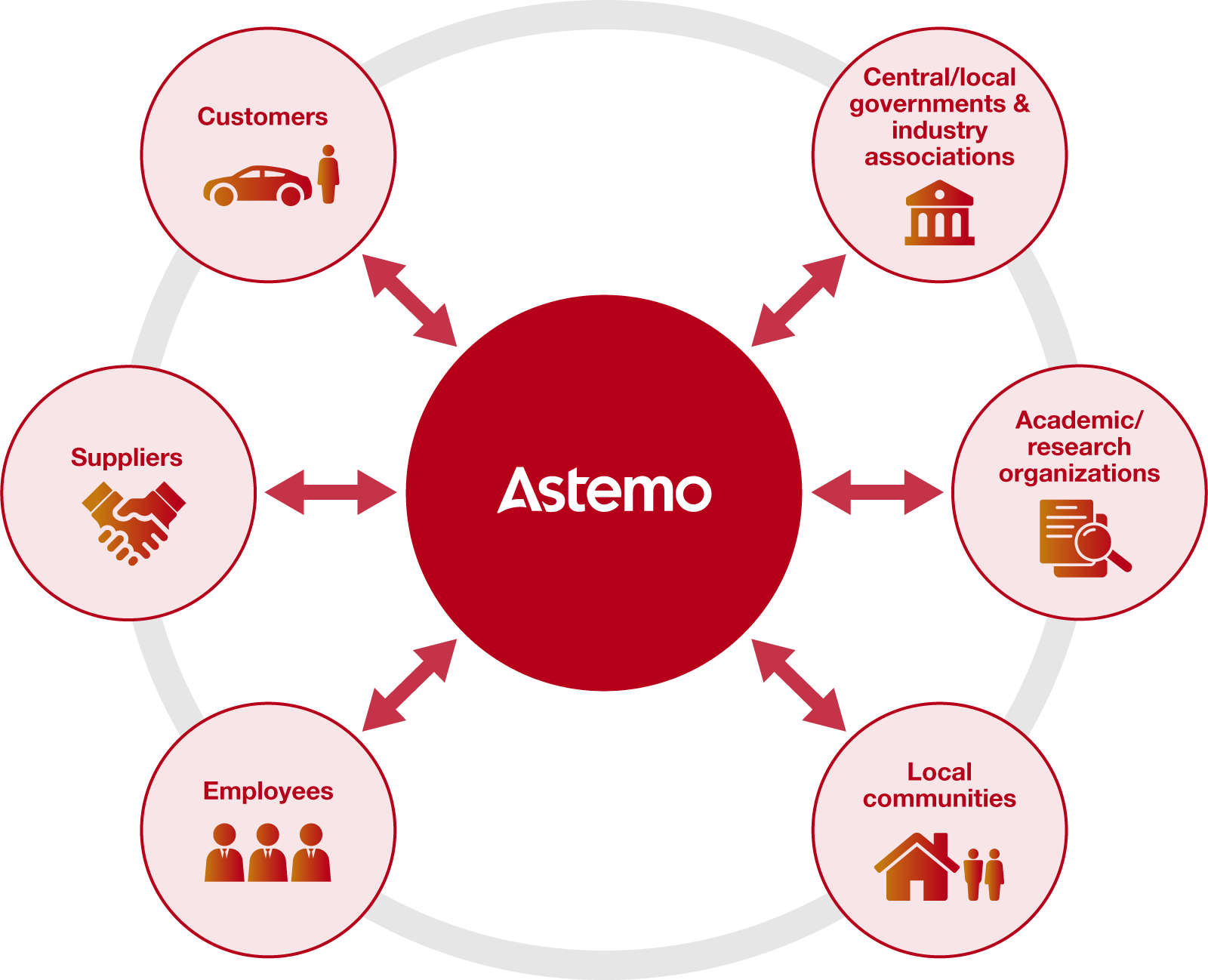 | Central/local governments & industry associations | Compliance with domestic as well as international laws and regulations; strengthening of industrial infrastructure; attracting companies; and contributing to a decarbonized, recycling-oriented society. |