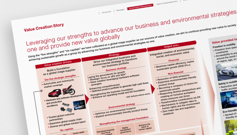 Leveraging the strengths we have cultivated as a global mega-supplier, we promote our business and environmental strategies in an integrated manner, delivering new value globally.