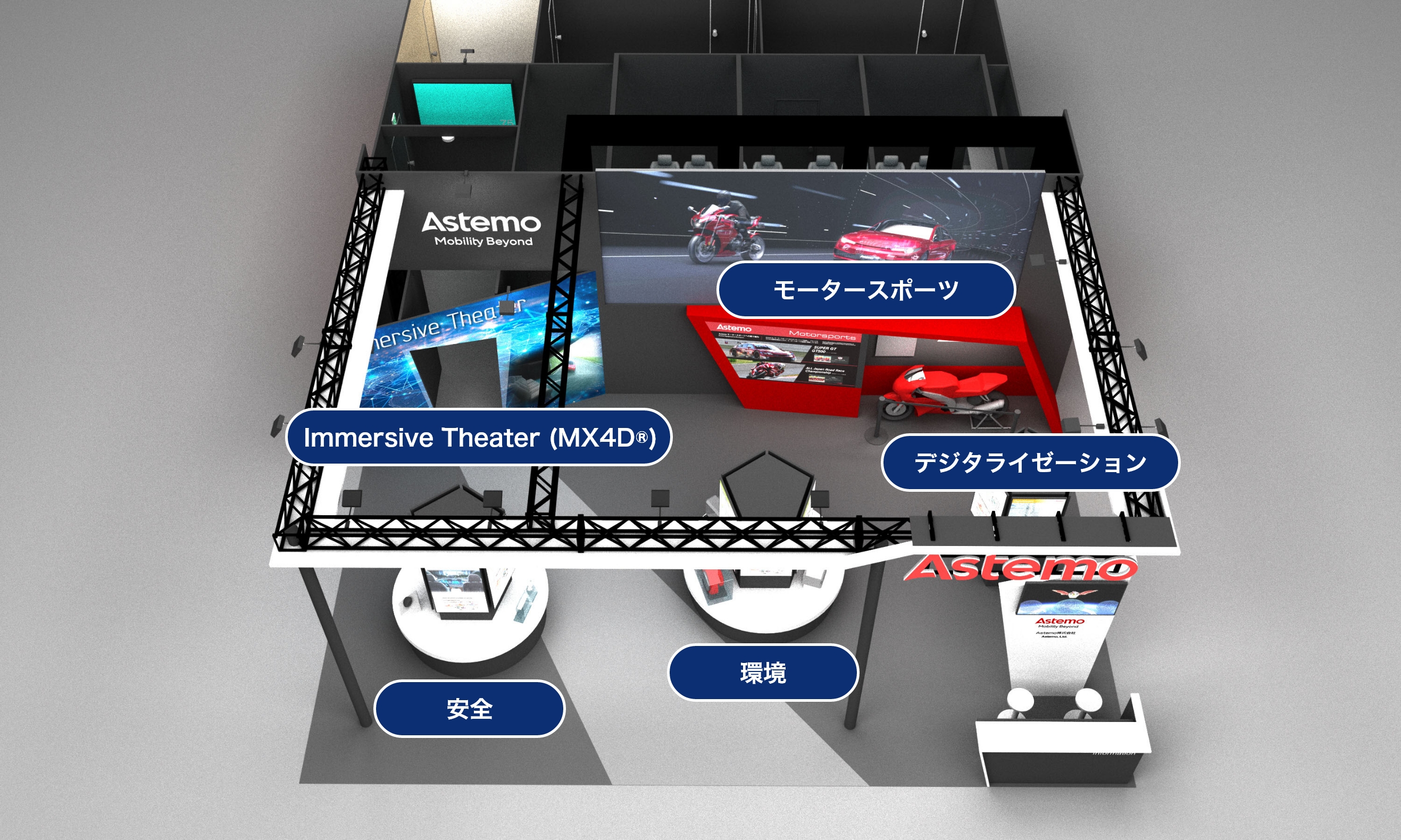 Astemo の先進技術で、「安全」と「自由」な移動を実現する未来のモビリティを、MX4D®*4で体感できます。