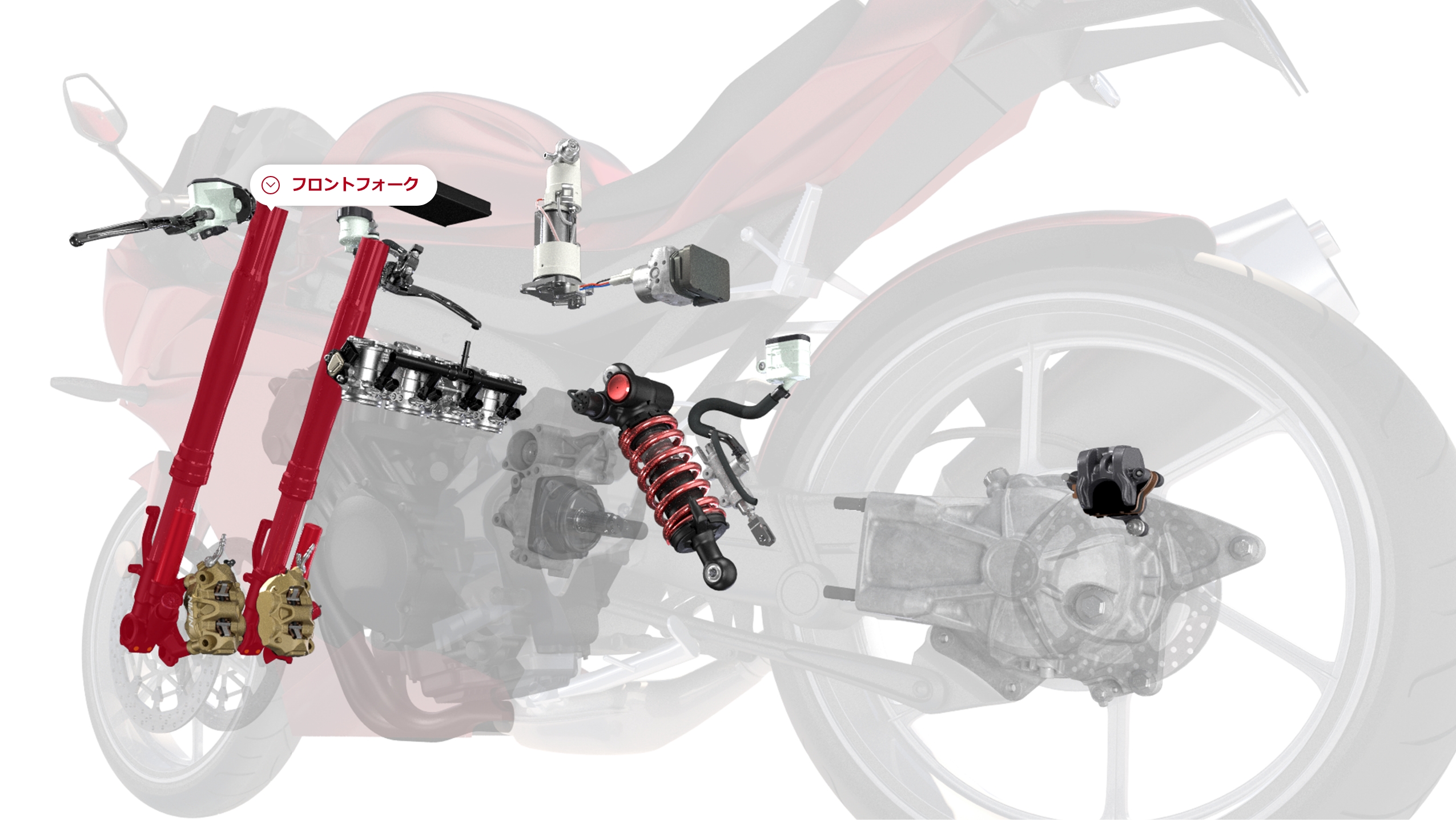 高い環境性能を誇るパワートレインシステム、操縦安定性と乗り心地を両立させるサスペンション、車両の安全性を高めるブレーキシステムなど、先進的な技術と製品により二輪車の進化をリードしています。