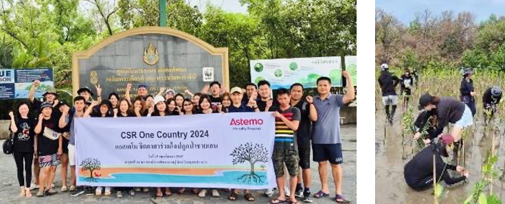 タイ国内のさまざまなな拠点から約30名の従業員が集まり、2024年11月に行われたマングローブ林での植林活動にボランティアとして参加しました。タイ湾内陸部に残る数少ない原生マングローブ林の一つで、タイ王国陸軍とWWFタイランドが共同で管理しているバンプー・ニューチャー・エデュケーション・センターに、600本のマングローブの苗木を植林しました。